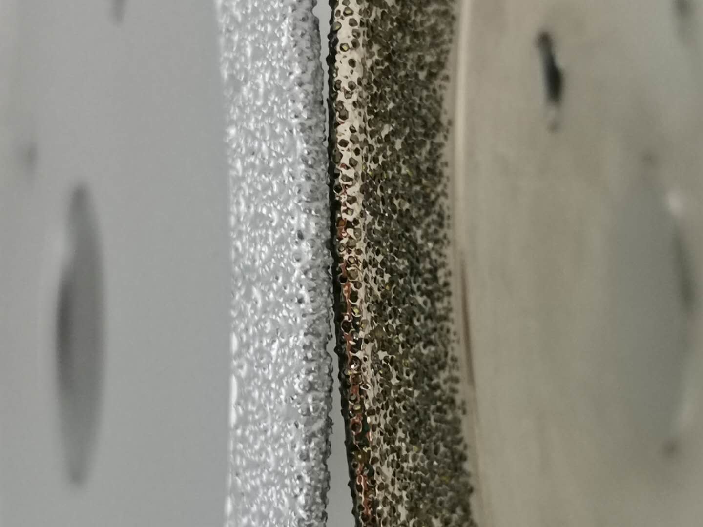 Nimmt schweißt bronzierendes Sägeblatt des Diamanten Diamantoberflächenaufdampfentechnologie an und Diamanten mit aktiver Füllung oder Nickel-ansässiger Füllung und bildet Element oder Legierung durch starkes Karbid, damit die metallurgische chemische Kombination der Diamant- und Werkzeugmatrix verwirklicht wird und erheblich verbessert die Steuerkraft des Diamanten. Bronzierendes DiamantSägeblatt ist für den Schnitt von Keramik passend, microspar, Kunststein, Marmor, Superscharfes.