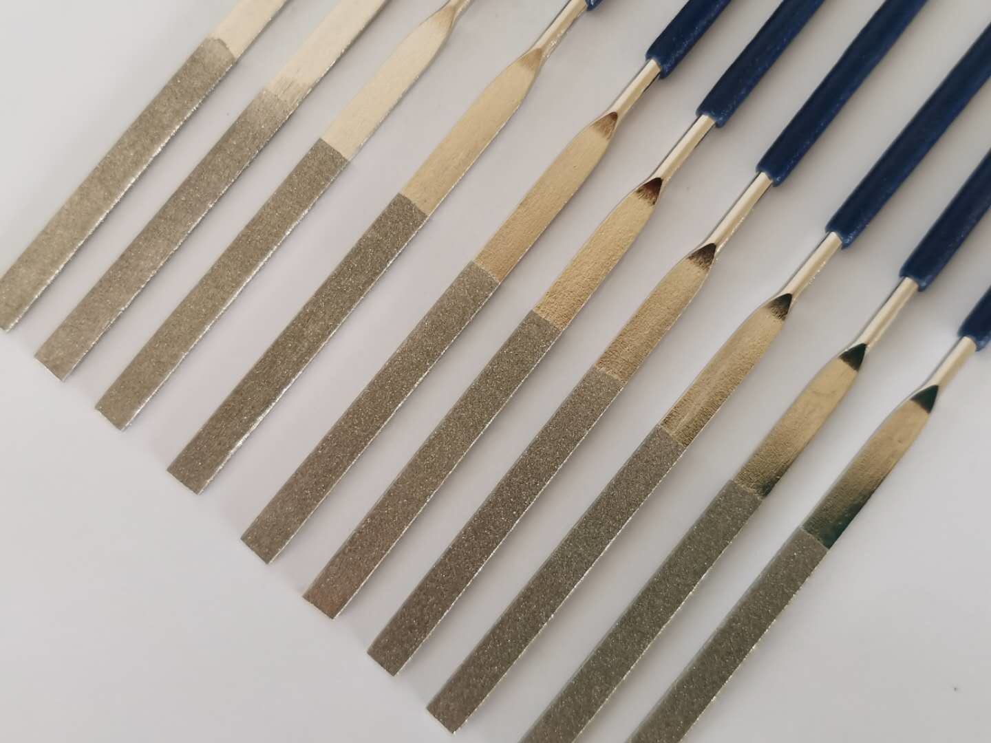 Wir haben einige verschiedene Arten Diamantnadelfeilen, wie flaches, quadratisch, halbrund, Runde, Messer und so weiter.