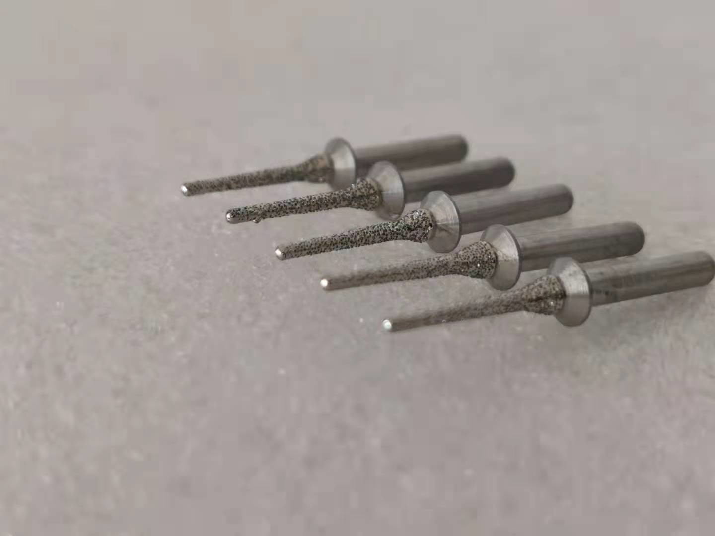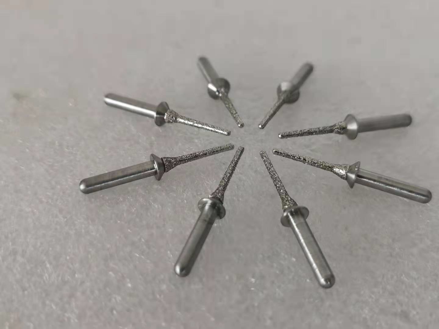 Beschreibung: Diese Dorne kennzeichnen Stahl Schäfte und mehrschichtiger Diamant beschichtete Oberflächen. Die Diamantpartikel werden auf den Dorn durch den Prozess „Electrogrip“ verpfändet, der die Diamantpartikelbelichtung maximiert, die eine freie cuttting Aktion zusichert, die groß Hitze und Abnutzung verringert