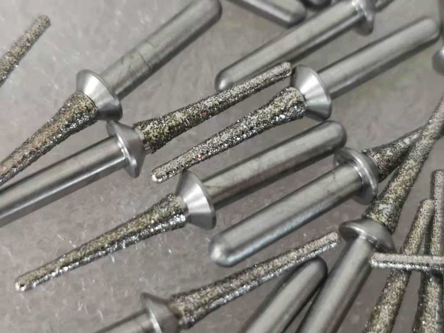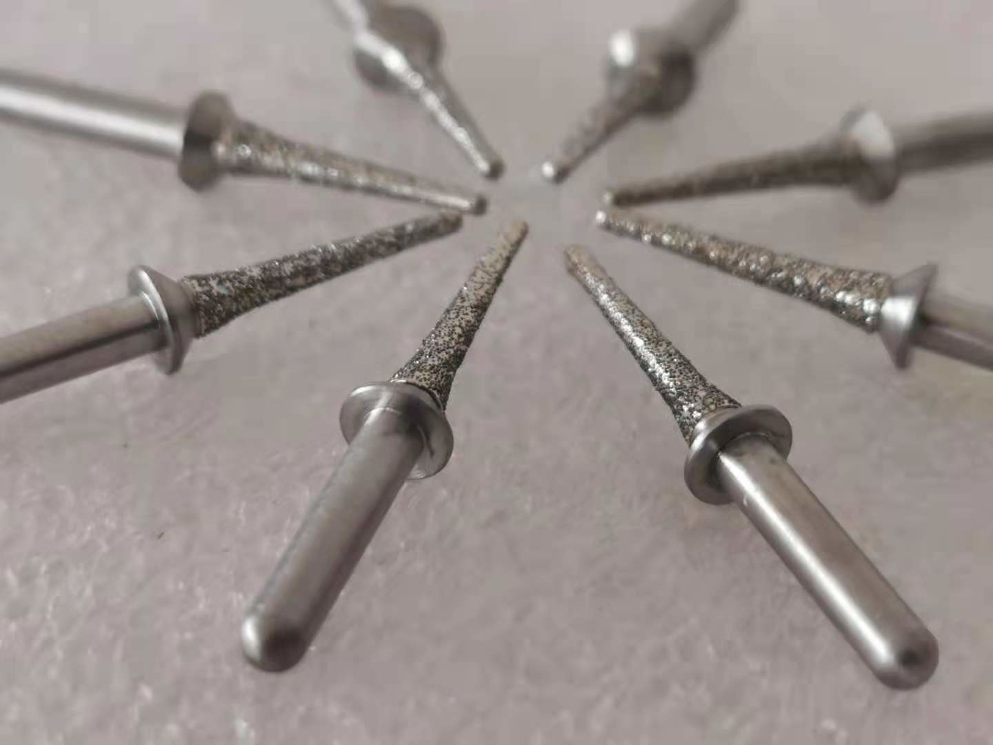 Beschreibung: Diese Dorne kennzeichnen Stahl Schäfte und mehrschichtiger Diamant beschichtete Oberflächen. Die Diamantpartikel werden auf den Dorn durch den Prozess „Electrogrip“ verpfändet, der die Diamantpartikelbelichtung maximiert, die eine freie cuttting Aktion zusichert, die groß Hitze und Abnutzung verringert