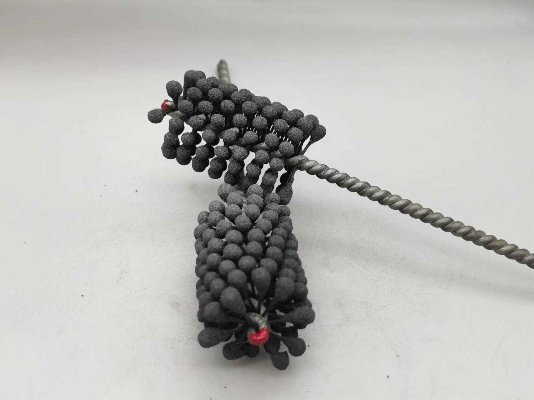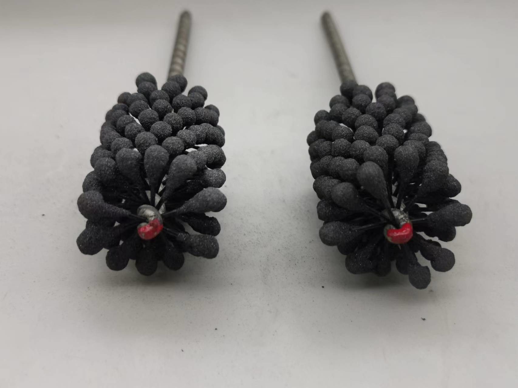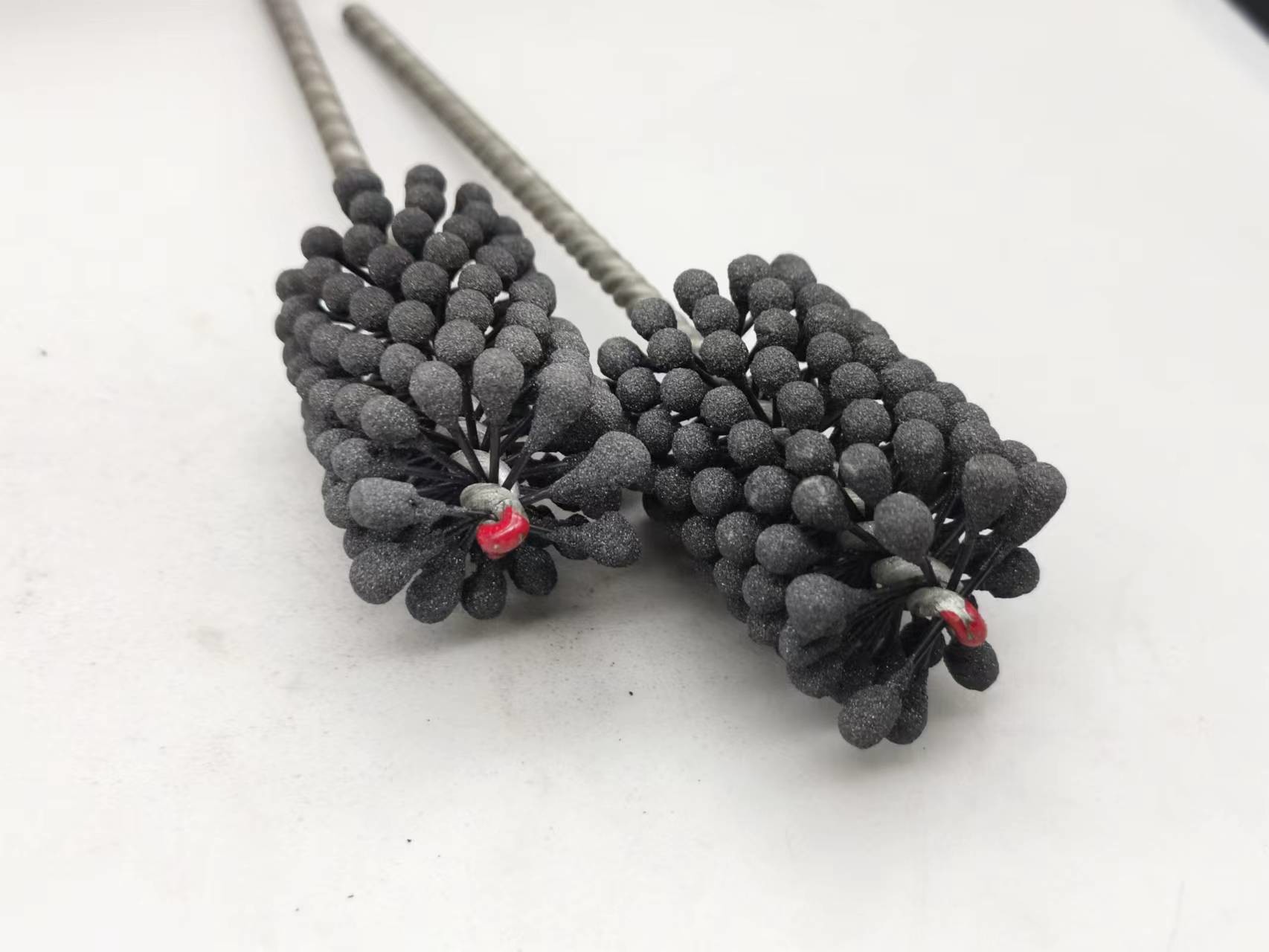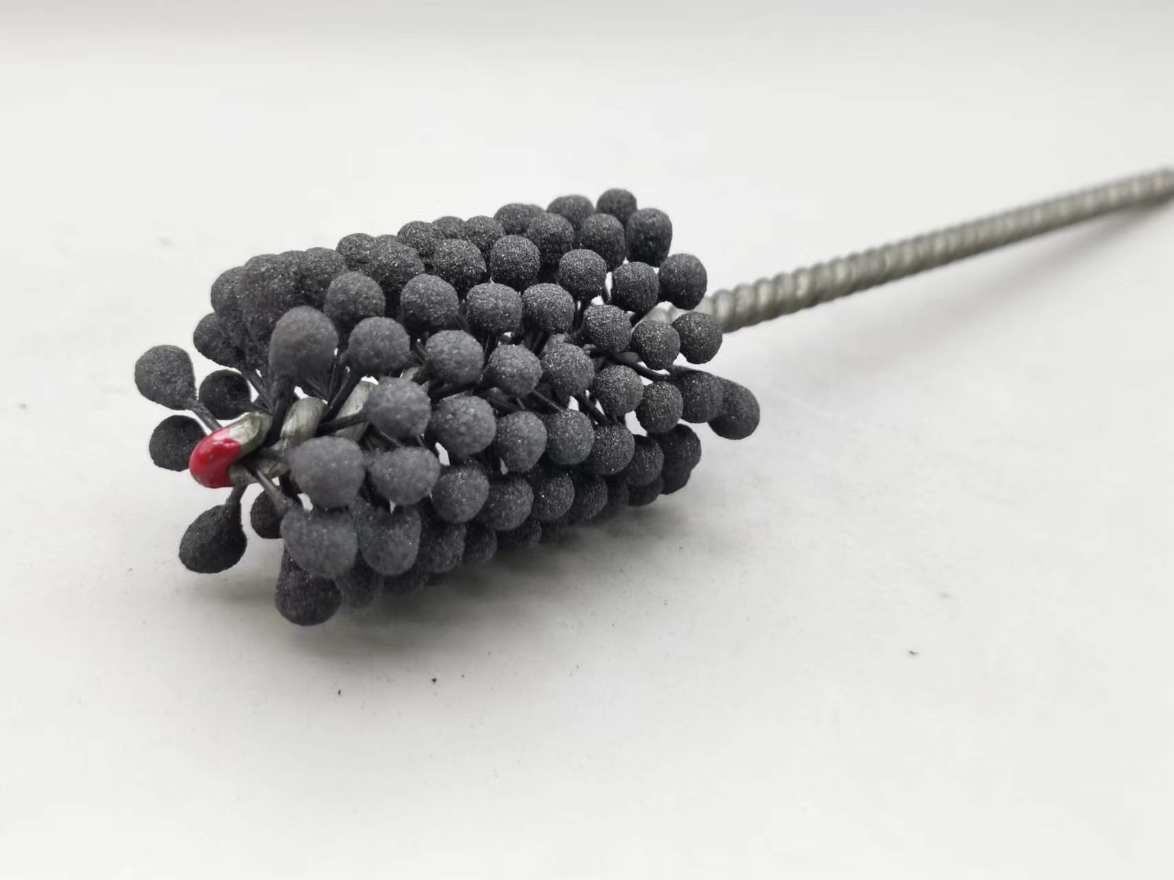 1. Dieser flexible Zylinderschleifstein des Produktes ist eine elastische, flexible abziehende Bürste mit Silikonkarbidscheuermitteln für Gebrauch auf Flussstahl, ein Edelstahl und ein Roheisen. Die Bürste liefert weichen Schneideeingriff und entfernt Grate von quer-gebohrten Löchern. Einzelradaufhängung stellt selbstzentrierendes, selbstausrichtendes zur Bohrung und selbstkompensierendes für Abnutzung sicher.
