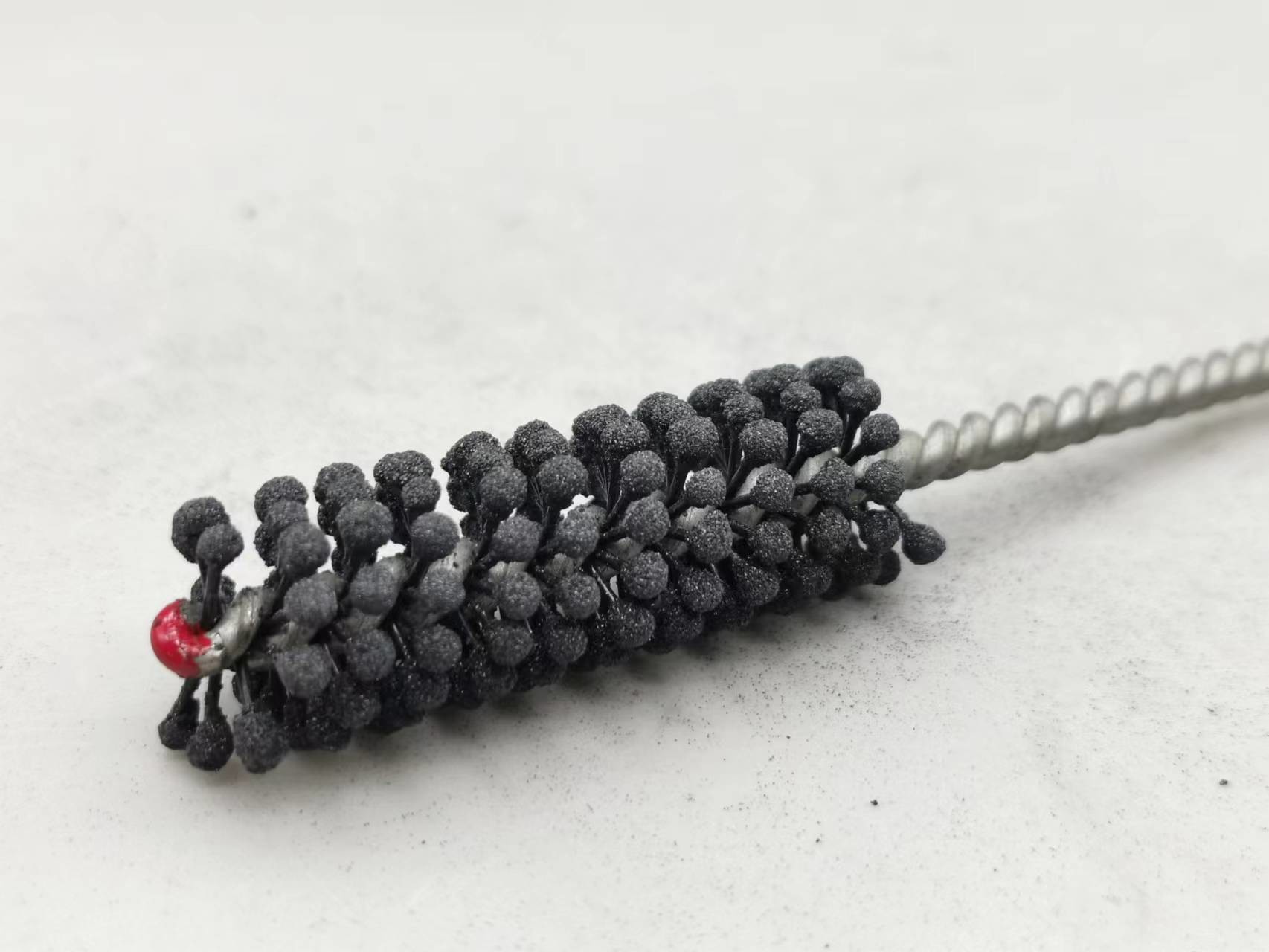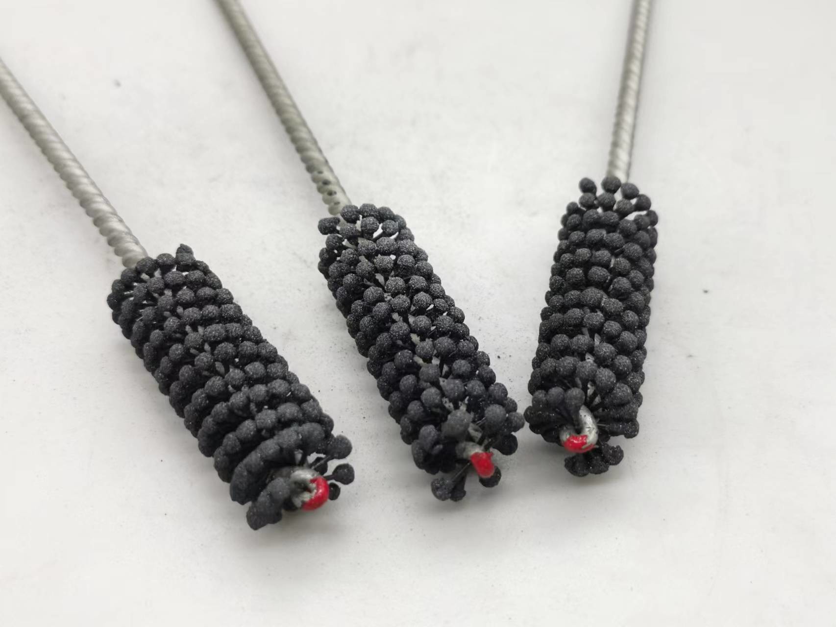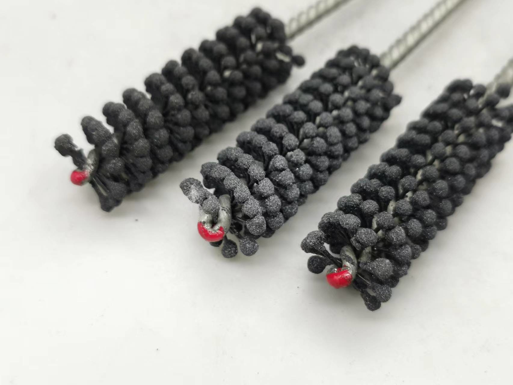 1. Dieser flexible Zylinderschleifstein des Produktes ist eine elastische, flexible abziehende Bürste mit Silikonkarbidscheuermitteln für Gebrauch auf Flussstahl, ein Edelstahl und ein Roheisen. Die Bürste liefert weichen Schneideeingriff und entfernt Grate von quer-gebohrten Löchern. Einzelradaufhängung stellt selbstzentrierendes, selbstausrichtendes zur Bohrung und selbstkompensierendes für Abnutzung sicher.