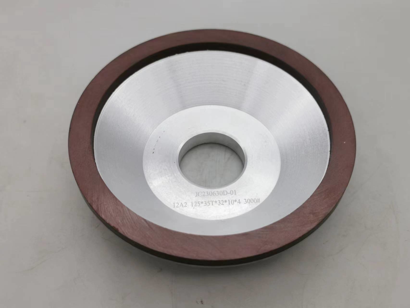 JC 12A2 Harzbindungsschleifrad, hergestellt in China. Es hat einen Aluminiumkörper mit einem inneren Loch von 32 und einer Dicke von 35. Die Grünzahl und Form sind nach Ihren Anforderungen anpassbar.Es eignet sich hervorragend für die Schleifung mit Harzbindungen.
