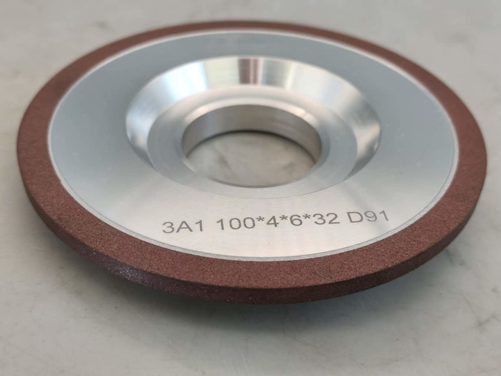 4A1 3A1 Harzbindungs-Reifenrad wird hauptsächlich zum Oberflächenschleifen, zum zylindrischen Schleifen von Hand-Karbid-Messwerkzeugen, Schneidwerkzeugen, Formen und auch zum Stanzschleifen sowie zum Schleifen verwendet.