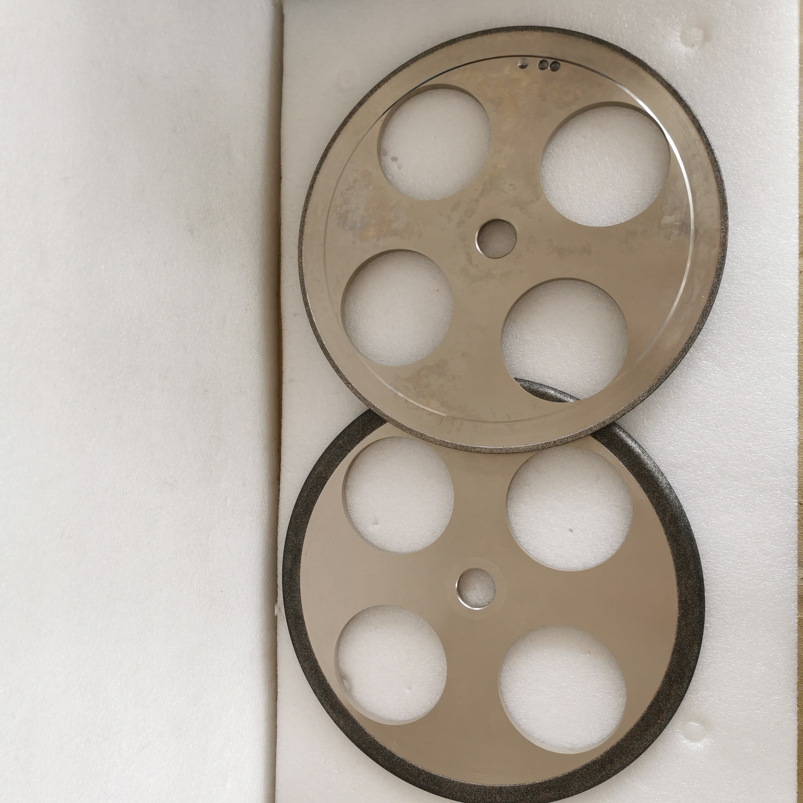 CBN-Schleifscheiben sind ein superhartes Schleifmittel aus kubischem Bornitrid (Cubic Boron Nitride), das im Galvanikverfahren hergestellt wird. Die Härte von CBN liegt nur knapp unter der von Diamant (Mohs-Härte 9,8) und es besitzt eine hohe thermische Stabilität und Temperaturbeständigkeit von über 1400 °C. Sie sind für die effiziente Bearbeitung von hochharten und zähen Eisenmetallen wie gehärtetem Stahl, Schnellarbeitsstahl, legiertem Stahl usw. konzipiert und werden häufig in der Präzisionsschleiferei, beim Werkzeugschärfen, in der Luft- und Raumfahrt sowie in der Automobilteilefertigung eingesetzt.